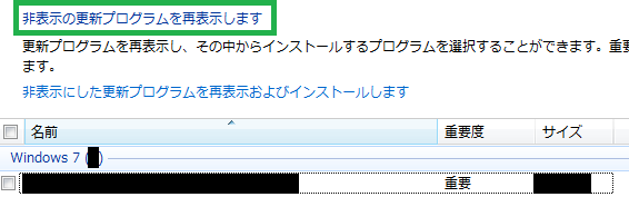 この2つの更新プログラムですけど、昨日の時点までは「非表示化した更新プログラム」の中に潜んでいたんですけど、