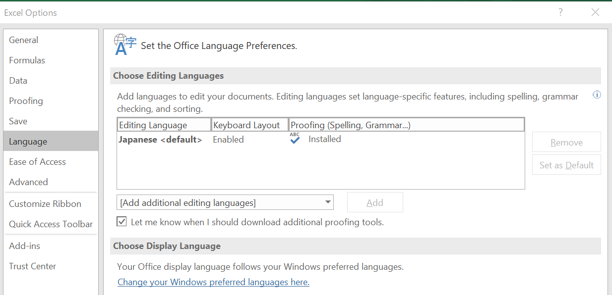 Office 2019 で Excel と PowerPoint が英語で表示されてしまうのですね。