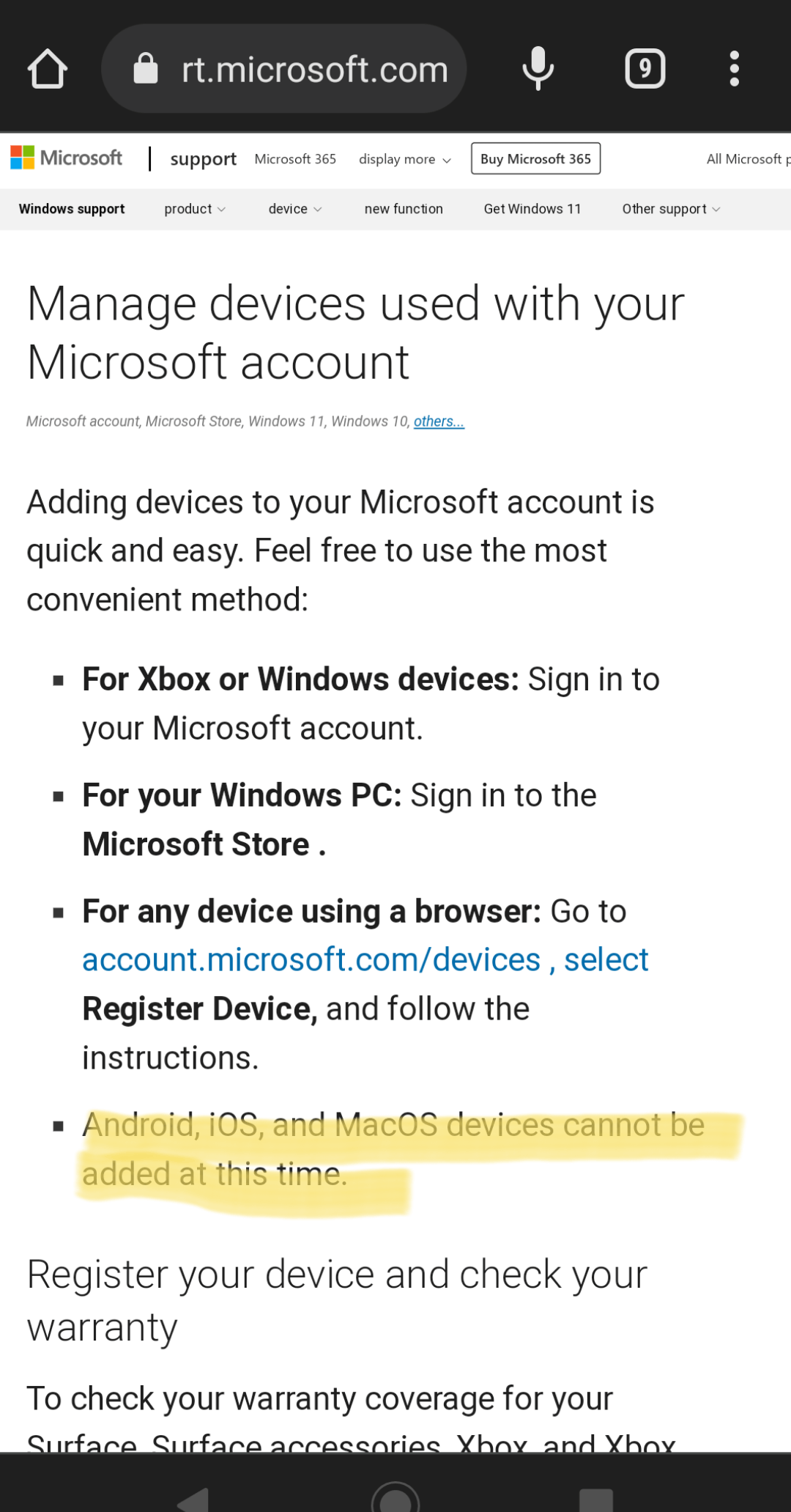 次の記事に示すように、MSアカウントから新しいデバイスを登録することをお勧めします。 https://support.microsoft.com/en-us/windows/manage-devices-used-with-your-microsoft-account-d4044995-81db-b24b-757e-1102d148f441