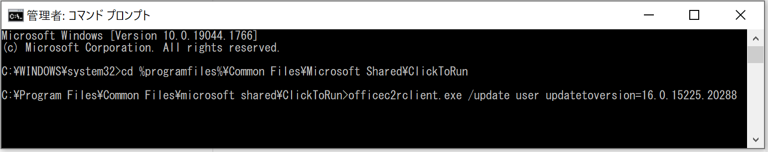 officec2rclient.exe /update user updatetoversion=16.0.15225.20288