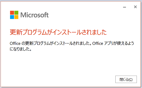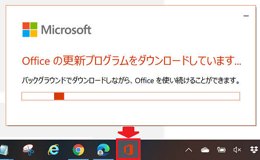 Enter キーを押すと「Office の更新プログラムをダウンロードしています」の画面が出るので、起動している Office 製品は終了して5分位待ちます。