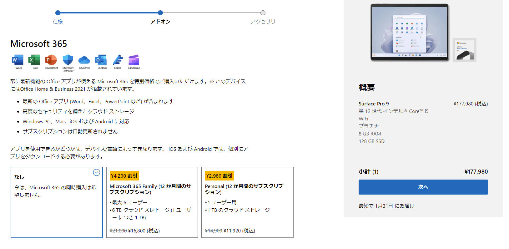 Microsoftストアでの購入なら、製品仕様選択ページでOffice製品についての何らかの表示がされていたはずです。