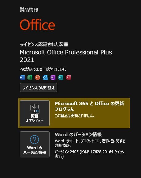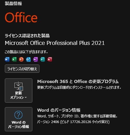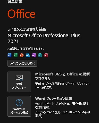 それを適用後にofficeも手動更新し下記最新バージョンになりました。