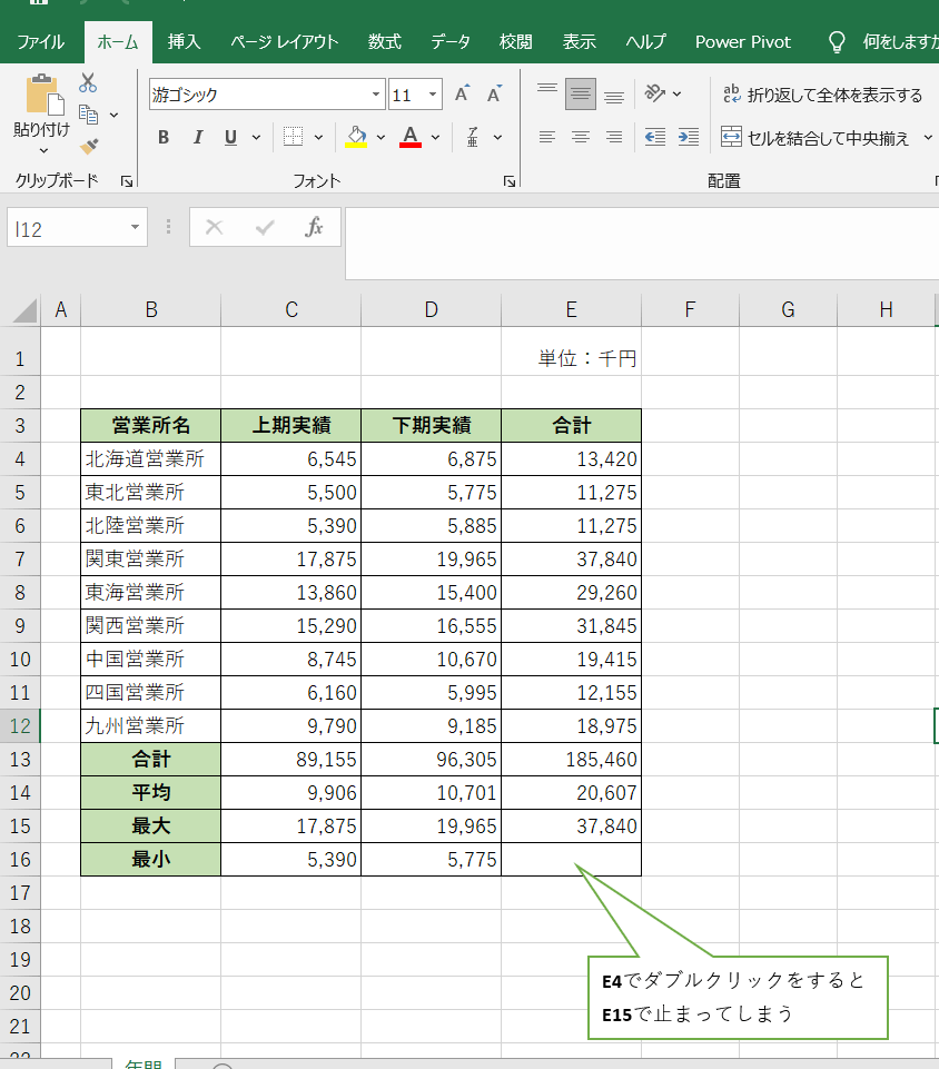 Excelの操作でオートフィルの機能について、計算式(関数を含む)入力後ダブルクリックをすると最後まで結果が表示されない時があります。残り1つのセルが表示されません。因みに空白のセルはありません。左右の列もデータ(値、数式、関数)が入っています。