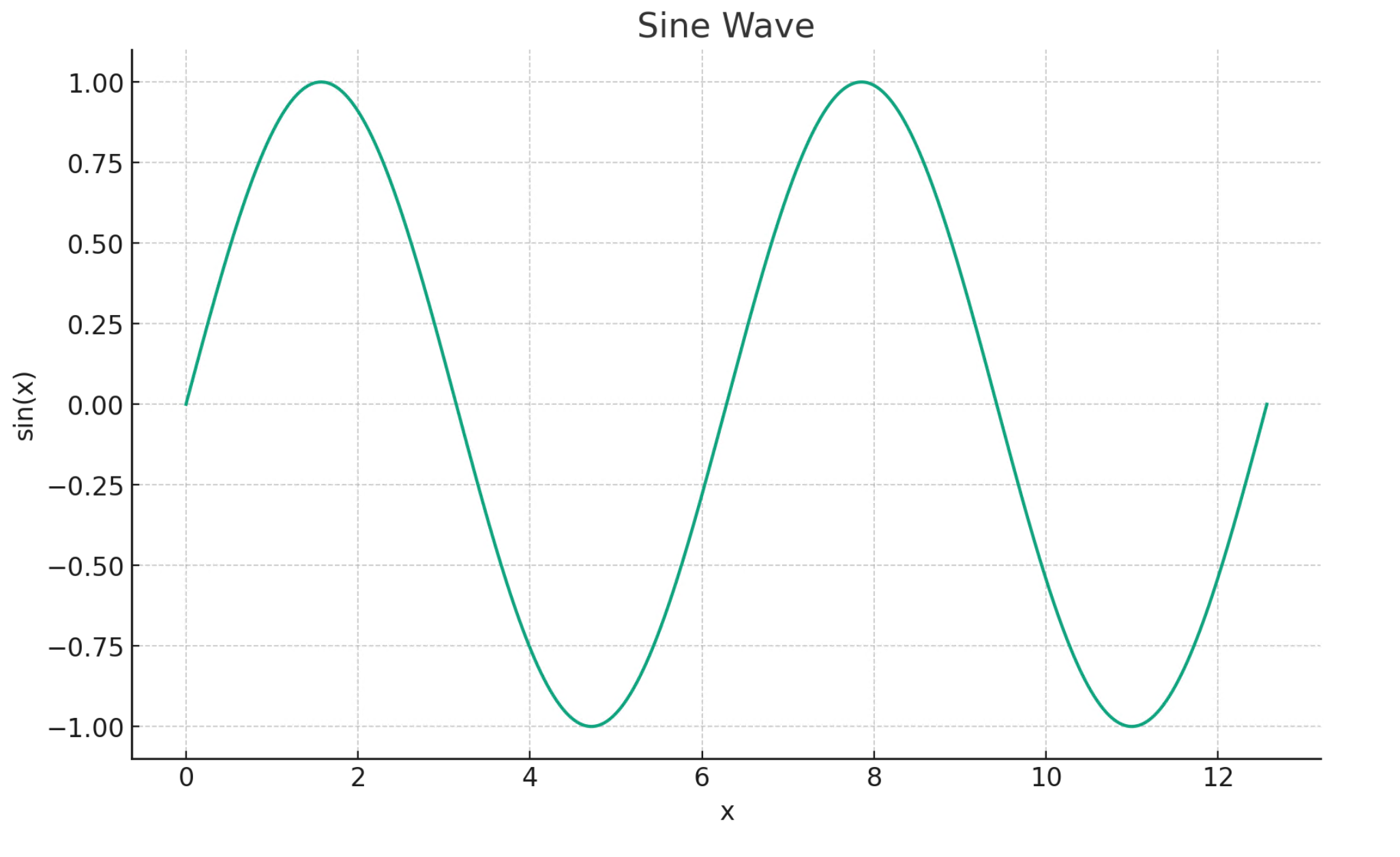 "value": "You're viewing the dark mode version of the sine wave visualization in the image above. The plot is set against a dark background with a cyan colored sine wave for better contrast and visibility. If there's anything else you'd like to adjust or any other assistance you need, feel free to let me know!"