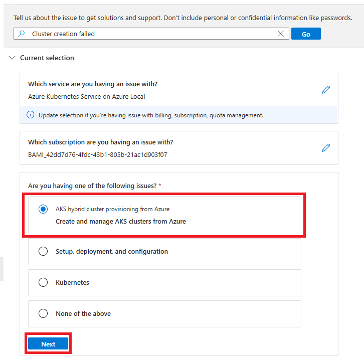 AKS on Azure Local で問題が発生した場合、この記事ではサポート リクエストを開く方法について説明します。