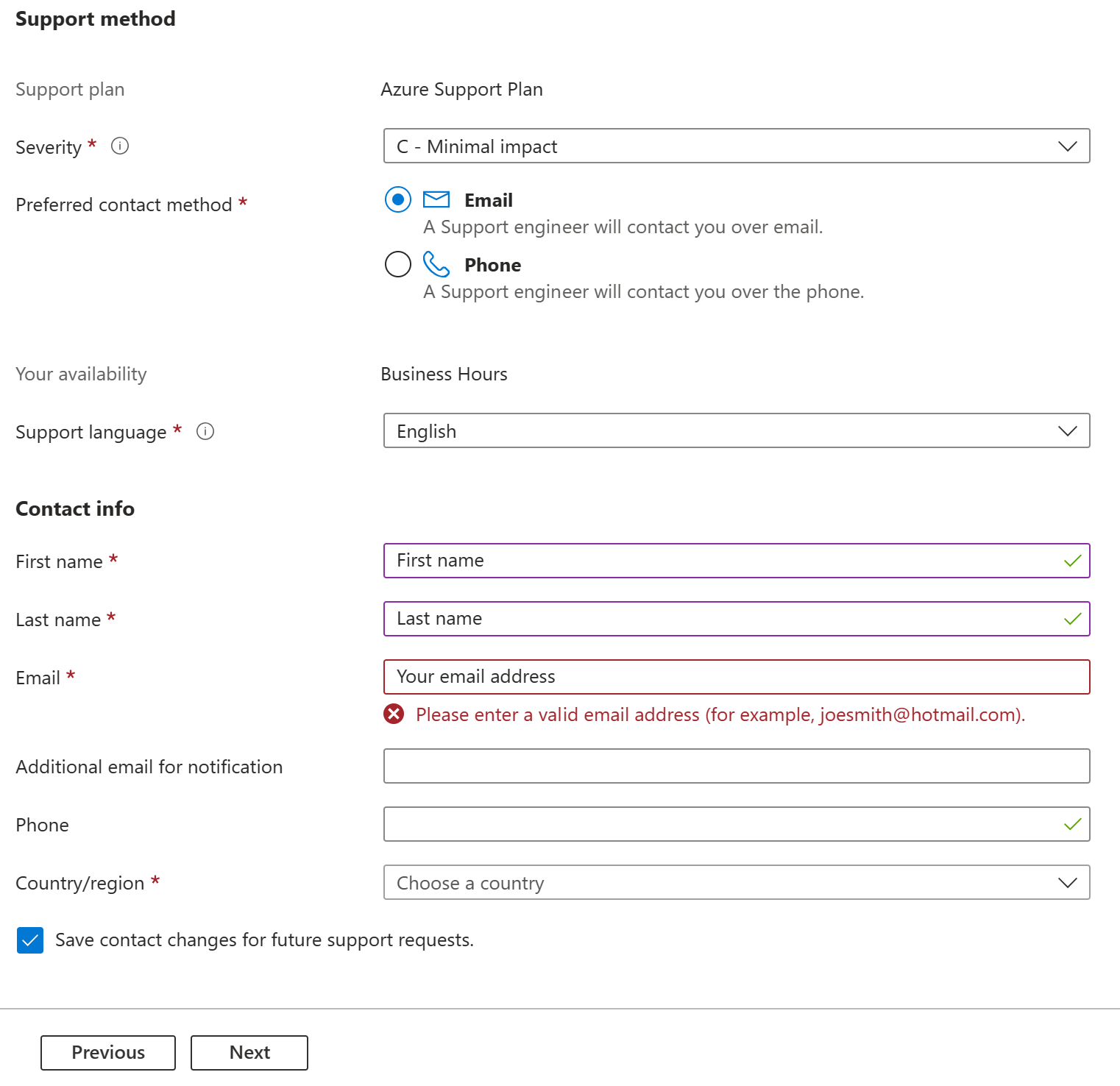 間違えた場合、または別の問題の種類を選択する場合は、ページの上部にある [Start again]\(もう一度開始 \) を選択します。 問題と解決策が該当しない場合は、ページの上部にある [サポート リクエストの作成 ] を選択します。
