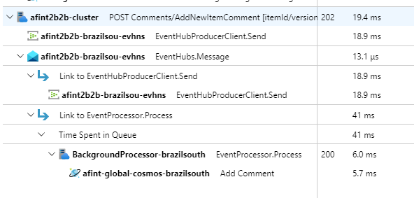 評価の投稿やコメントの投稿などの書き込み操作は非同期的に処理されます。 最初に、API から、アクションの種類やコメント データなど、すべての関連情報を含むメッセージがメッセージ キューに送信され、作成されるオブジェクトの HTTP 202 (Accepted) ヘッダーを含む Location がすぐに返されます。