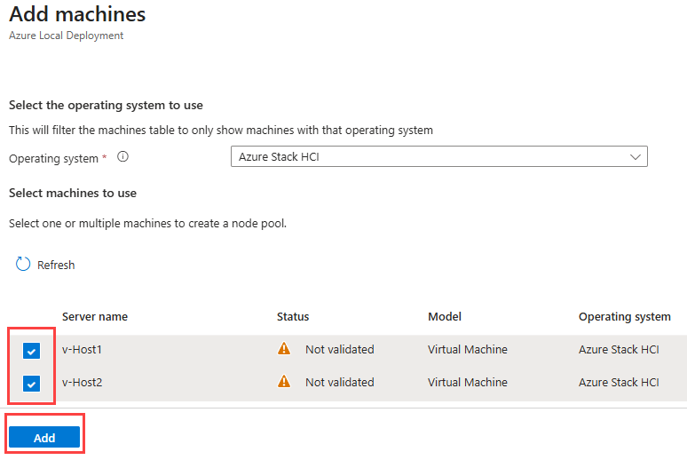 この Azure ローカル インスタンスを構成するマシンを選択します。