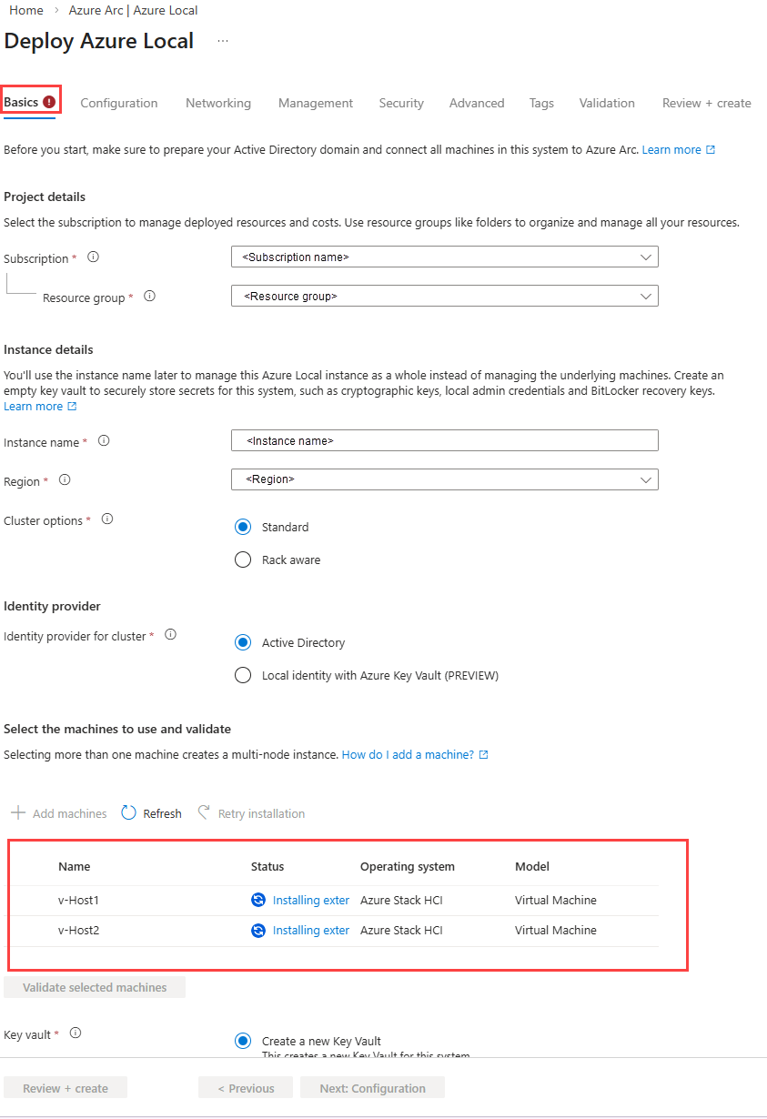 - Azure ローカル マシンのオペレーティング システムは、Azure Stack HCI として自動的に選択されます。