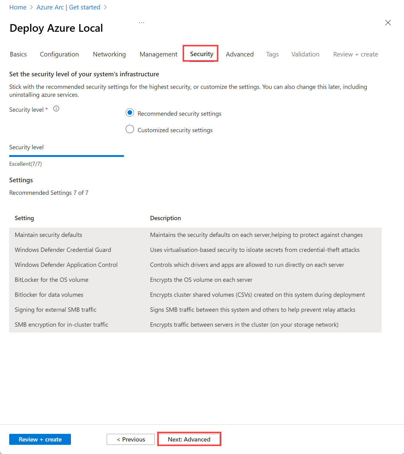 - 推奨されるセキュリティ設定 - 最高のセキュリティ設定を設定します。