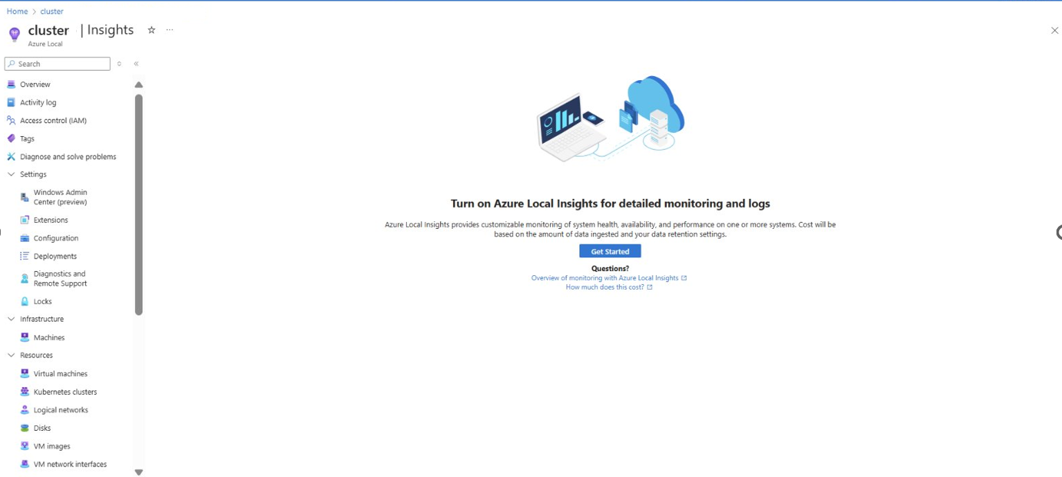 Azure portal で、Azure ローカル リソース ページを参照し、システムを選択します。 [機能] タブで、[分析情報] を選択します。