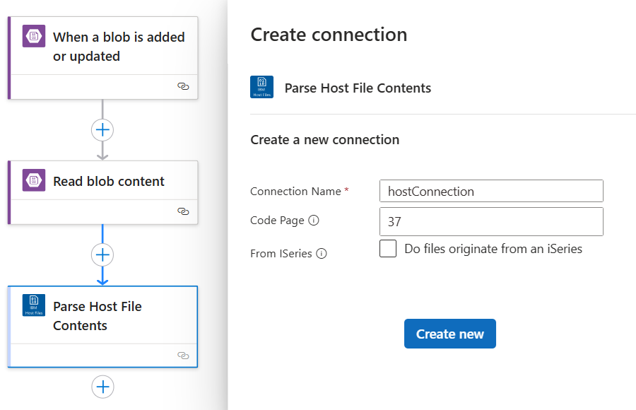 Azure Logic Apps の Standard ワークフローから新しい IBM ホスト ファイルと i シリーズ物理ファイルを解析して生成するには、 IBM Host File 組み込みのサービス プロバイダー ベースのコネクタを使用できます。 メインフレーム システムが導入されて以来、開発者はユビキタス ホスト ファイルを使用して、ミッション クリティカルなシステムの豊富なデータを格納していました。 このコネクタは IBM メインフレームまたはミッドレンジ システムにアクセスする必要はありませんが、ホスト ファイルを Standard ワークフローで使用できるようにする必要があります。 ファイルは、FTP、Azure Blob Storage、Host Integration Server、またはパートナー ソフトウェア アプライアンスを使用して使用できます。 IBM ホスト ファイル コネクタは、21Vianet が運営する Azure Government と Microsoft Azure を除くすべての Azure Logic Apps リージョンで使用できます。