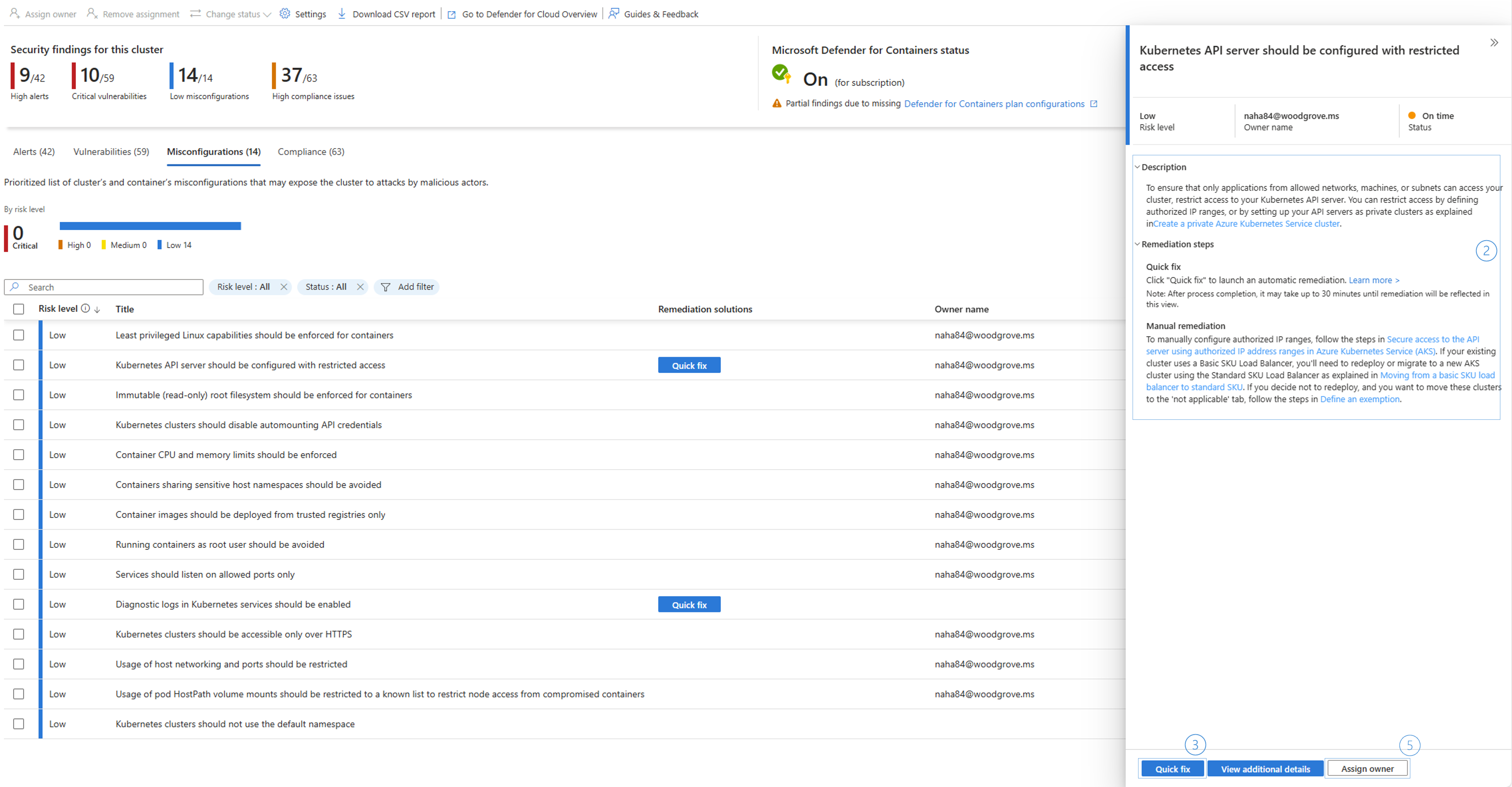 - 修復を追跡する所有者を割り当てます (Defender CSPMが必要)。