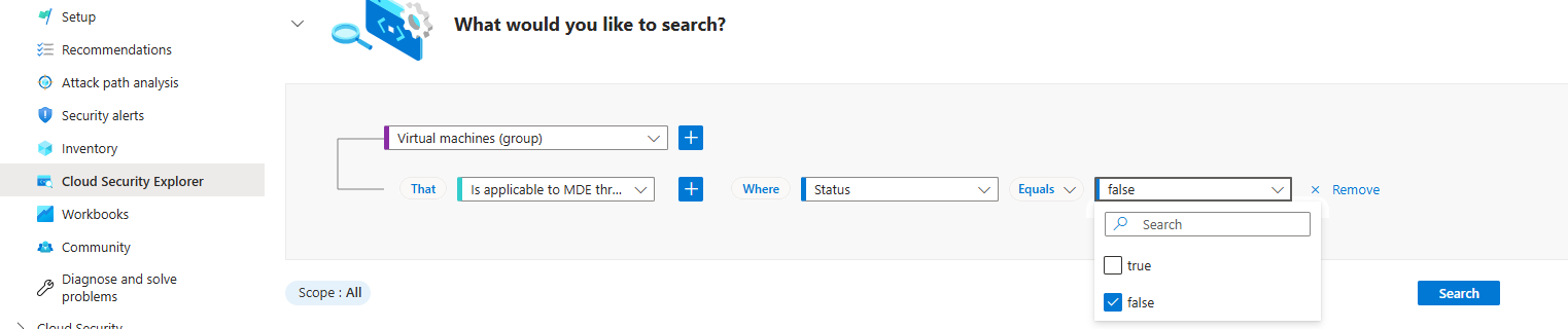 Defender for Endpoint が適用されない VM の一覧を取得するには、次のスクリーンショットに示すクエリを実行します。