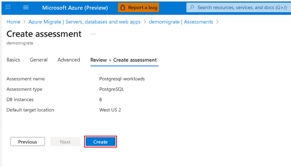 - Azure Database for PostgreSQL 評価の結果を確認します。