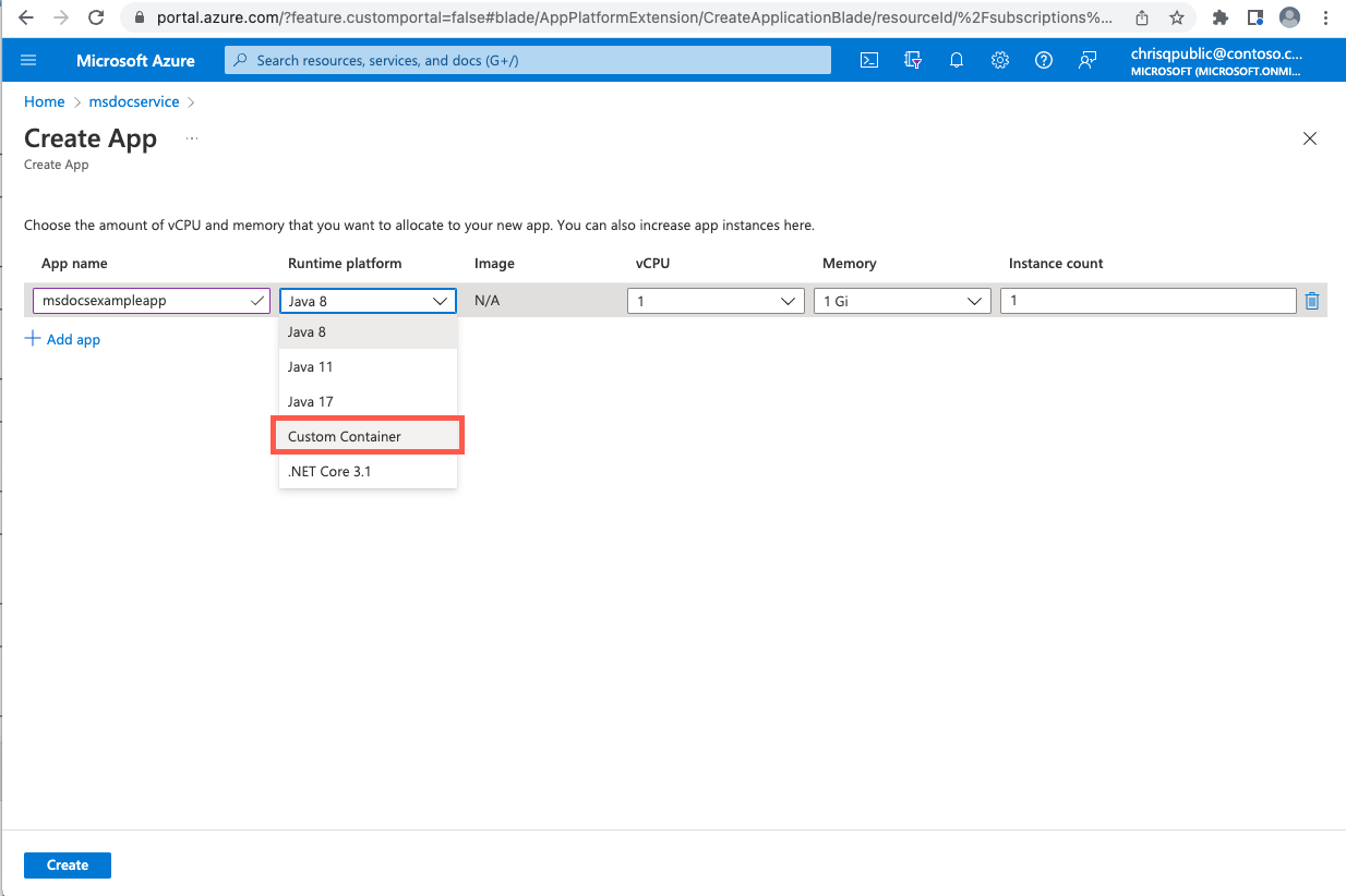 オプション 1: Azure Spring Apps 経由でアップロードする