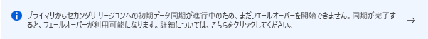 フェールオーバーが完了に近付いている場合、冗長性ページには元のセカンダリ リージョンが新しいプライマリとして表示されますが、フェールオーバーが進行中であることを示すメッセージが引き続き表示される場合があります。