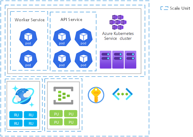 スケールの制限: Azure サブスクリプションのスケール制限とクォータが、アプリケーションの設計、テクノロジの選択、スケール ユニットの定義に関係している可能性があります。 スケール ユニットは、サービスのスケール制限を回避するのに役立つことがあります。 たとえば、1 つのユニットの AKS クラスターで保持できるノードが 1,000 個だけの場合、2 つのユニットを使うと、その制限を 2,000 ノードに増やすことができます。