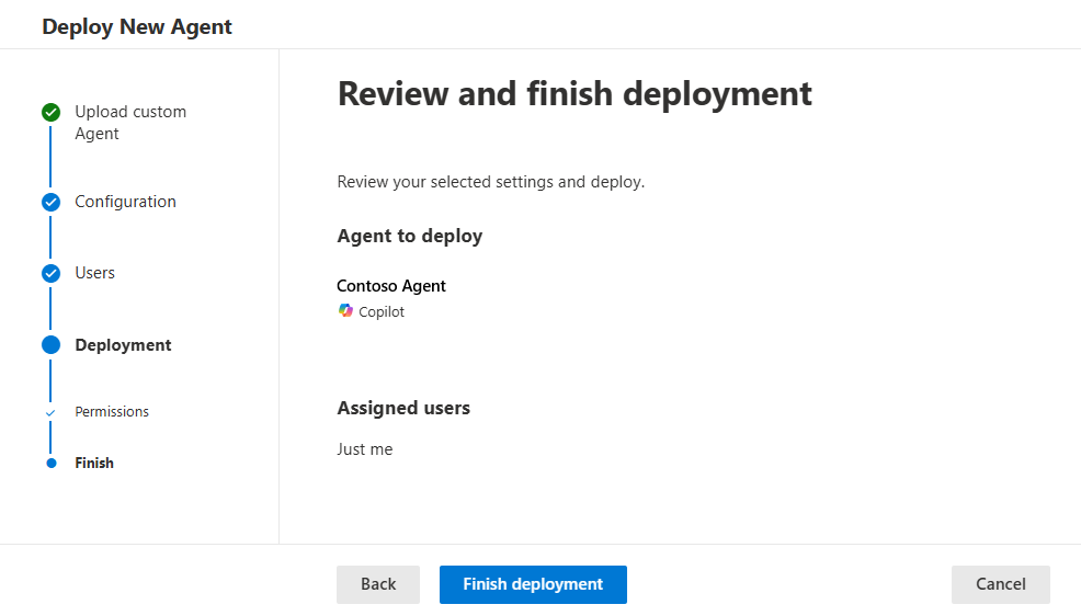 [ デプロイの完了] を選択して、エージェントのデプロイを確認して完了します。