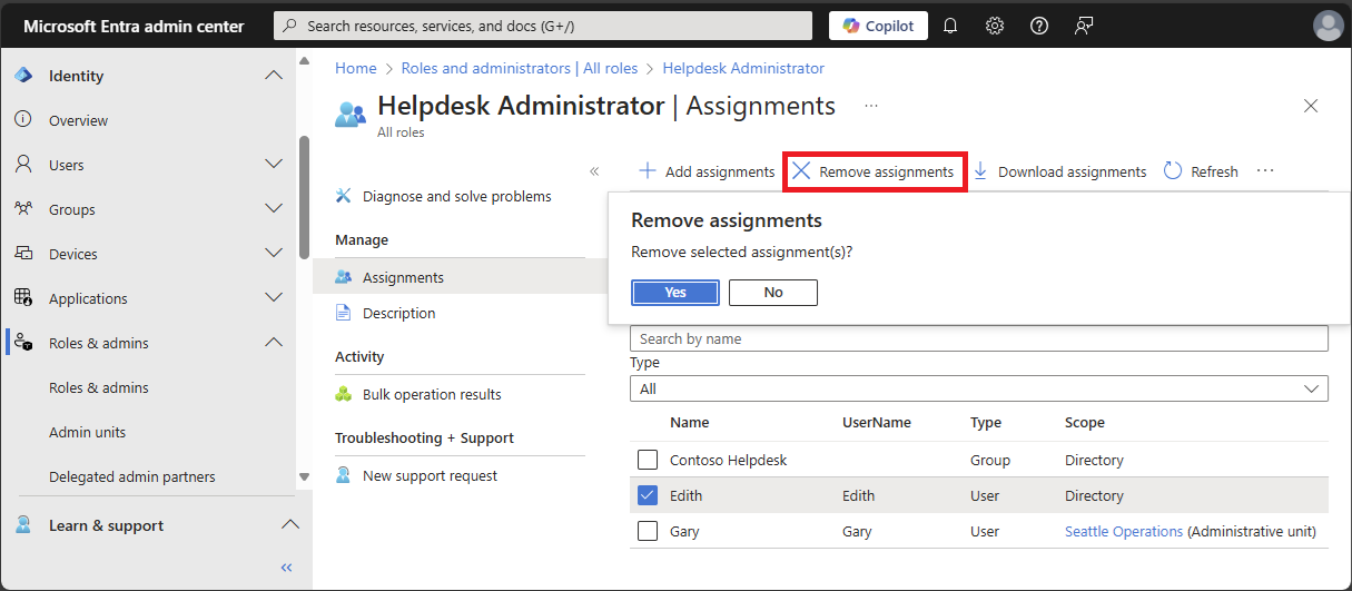 Microsoft Entra ロールの割り当てを削除する