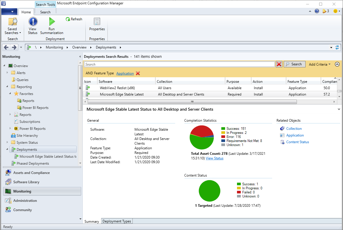Configuration Manager コンソールで、[監視] ワークスペースに移動し、[デプロイ] ノードを選択します。