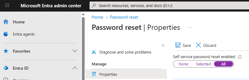 このオプションを選択すると、Microsoft Entra 管理センターの [パスワード リセット] ページに移動します。