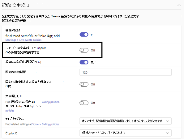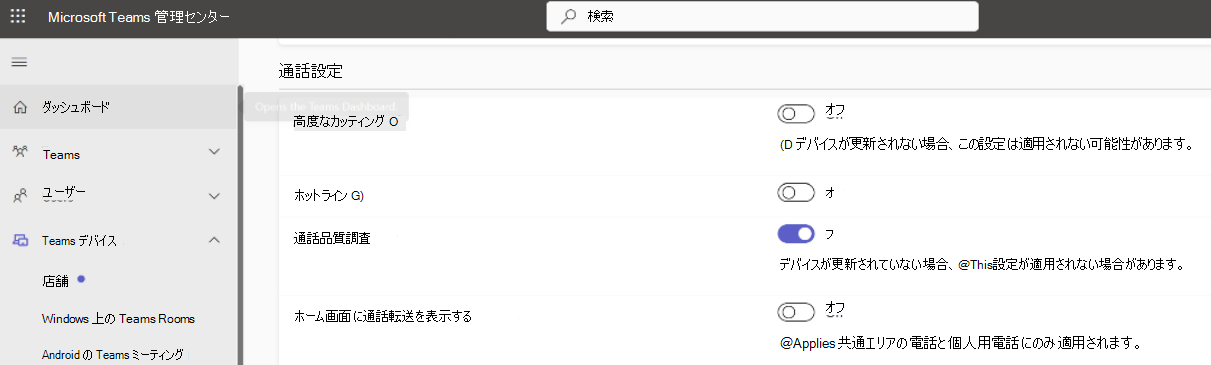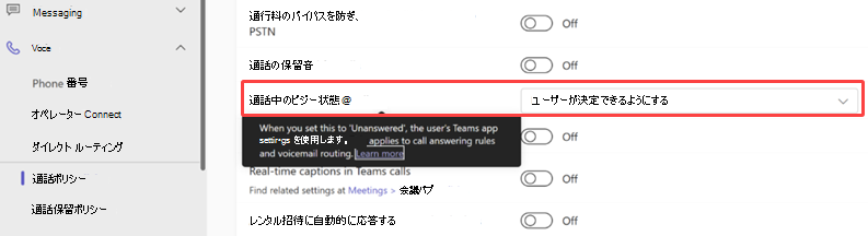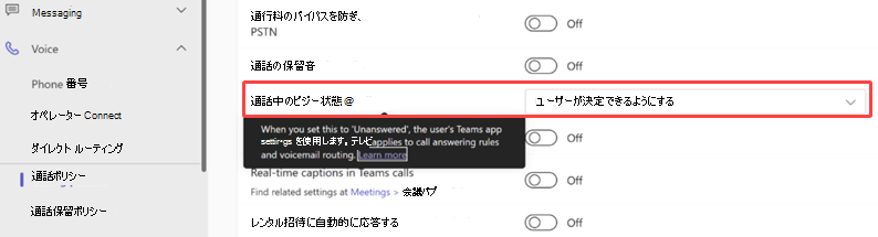 - この機能は既定でオフになっているので、管理者は Teams 管理者設定で設定を有効にする必要があります。 Microsoft Teams 管理 センターでこの機能を制御する設定は、後で使用できるようになります。