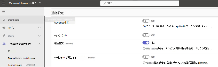 - Teams 管理 センターでパネルの会議室の予約をリモートで有効または無効にする。