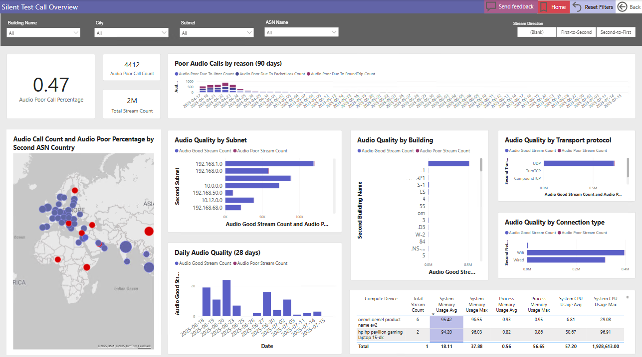 この機能により、ユーザーを中断することなくバックグラウンドで設定されたスケジュールに従ってテストを実行することで、通話品質とネットワーク監視のプロアクティブな監視が可能になります。 テストを実行すると、IT 管理者は通話の品質と潜在的な問題の詳細をレポートで確認できるため、エンド ユーザーの通話、会議、タウン ホールのエクスペリエンスを向上させるためにプロアクティブな対策を講じることができます。