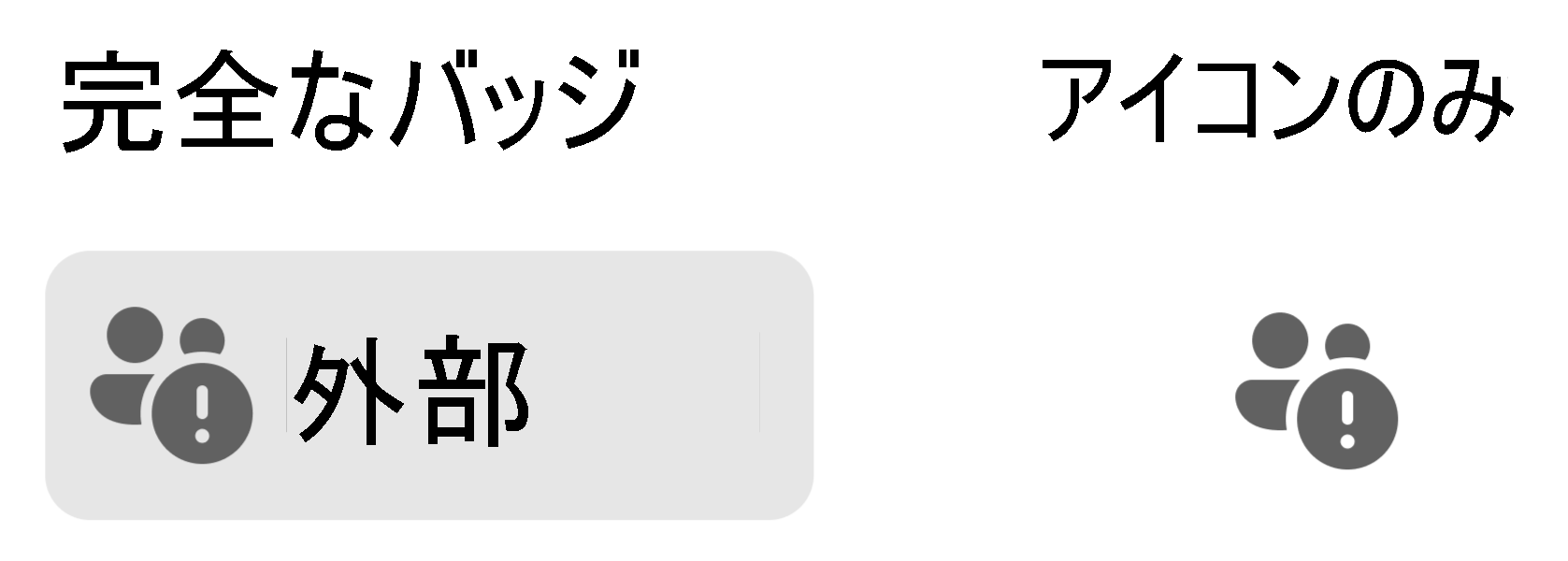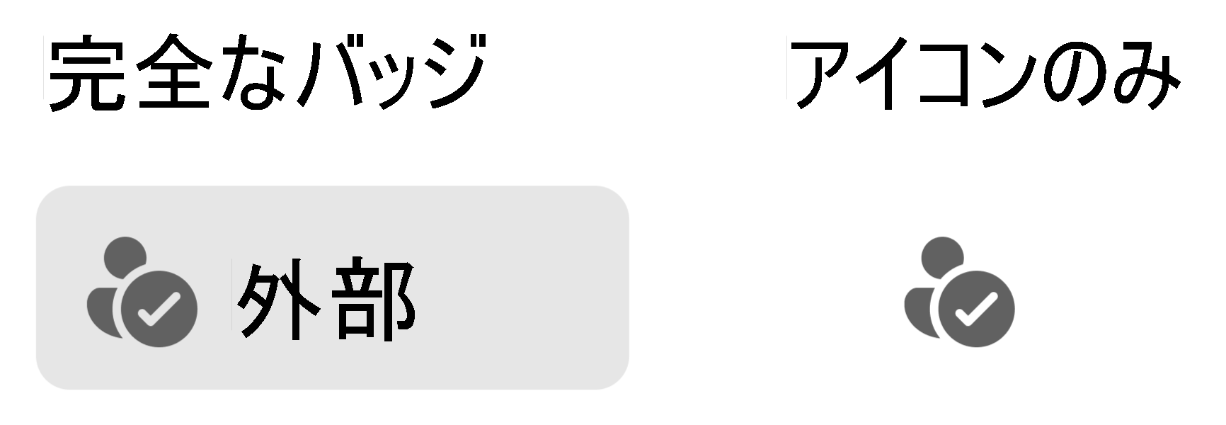 Teams の信頼インジケーターは、意図的に複数のビジュアル形式で設計されているため、すべてのエクスペリエンスで効果的でありながら目立たないようにします。 バッジの バリエーションは 2 つあります。