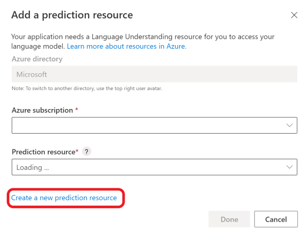 If you already have a prediction resource, add it. Otherwise, select Create a new prediction resource.