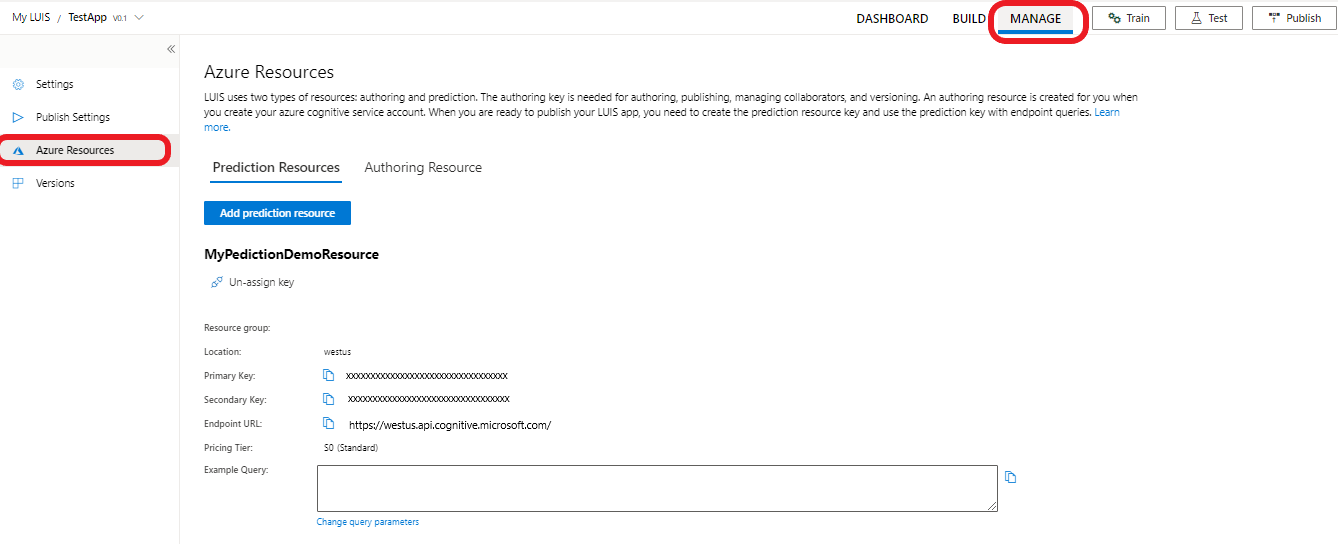 Create a LUIS Prediction resource using the LUIS portal