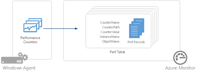 Azure Monitor は、そのカウンターがインストールされているすべてのエージェントについて、指定したサンプル間隔で、指定されたすべてのパフォーマンス カウンターを収集します。 データは集計されません。 生データは、Log Analytics ワークスペースで指定された期間、すべてのログ クエリ ビューで使用できます。
