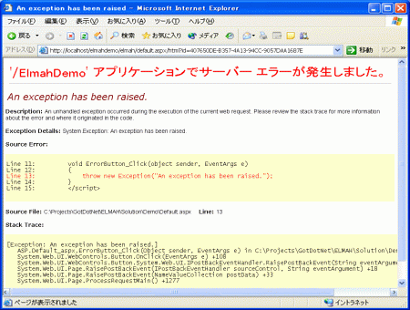 注: ASP.NET Web サービスで未処理の例外が発生した場合、Error イベントは HTTP モジュールにも ELMAH にも報告されません。その代わりに、ASP.NET ランタイムによってインターセプトされ、SOAP エラーがクライアントに返されます。Web サービスでエラーを記録するには、SOAP エラーをリッスンする SOAP 拡張機能 を作成する必要があります。