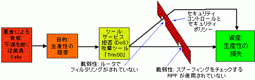図 2 は、攻撃へとつながるさまざまな脅威、目的、手段、脆弱性の関係を示した理論モデルです。