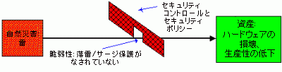 だれも自然の脅威から逃れることはできません。地震、ハリケーン、洪水、稲妻、火災などは、コンピュータ システムに深刻な被害を与えます。情報は失われ、生産の停止により損失が生じます。また、ハードウェアが壊れ、重要なサービスも中断せざるをえません。自然災害からコンピュータを保護するのはほとんど不可能です。最善策は、災害時における回復プランや非常時における対策を講じておくことでしょう。暴動、戦争、テロ攻撃などの脅威も自然災害に含まれます。これらは人間がもたらす脅威ですが、自然災害に分類されます。