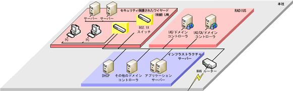 ワイヤード LAN のセキュリティに対応した IAS インフラストラクチャを再利用する。