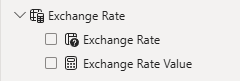 次のスクリーンショットでは、Exchange Rate テーブルは計算テーブルであり、Exchange Rate 列には数値範囲の値が含まれています。
