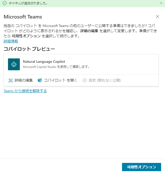 詳細については、Microsoft Teams にエージェントを追加するを参照してください。