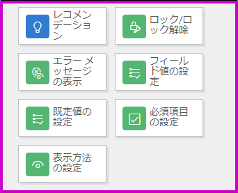 | 既定値の設定 | 列の値を設定しますが、列に値がない (null) 場合に限ります。 | すべてのスコープ |