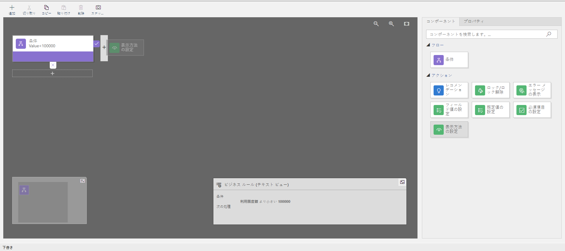 プロセスのさまざまな部分をすばやく参照するには、ミニマップ (画面の左下) を使用します。 ミニマップは、画面外にスクロールする必要がある複雑なプロセスがあるときに便利です。