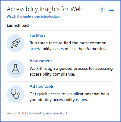 ![[Web 用アクセシビリティ インサイト] の [起動パッド] メニューのスクリーンショット。](media/accessibility-insights-web.png)
