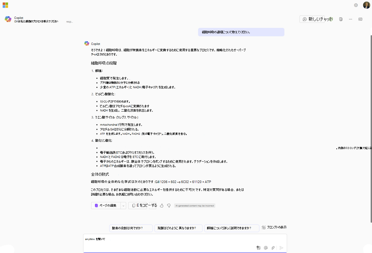 AI は間違いを起こす可能性があります。 ご自身で判断してください。 Copilot Chatの回答に基づいて意思決定または行動する前に、事実とリンクされたソースを二重チェックします。 Copilot Chatのフィードバック オプションを使用して、応答を評価します。