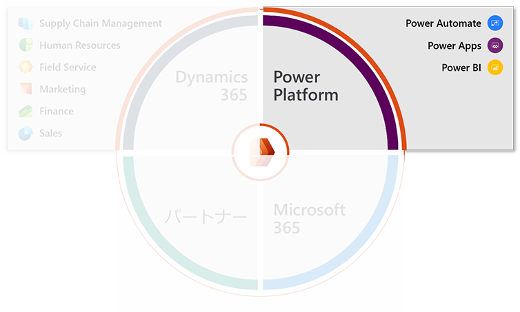 プラットフォームから見ると、Project Operations は Microsoft Power Platform の上に構築されています。 Microsoft Power Automate、Microsoft Power Apps、または Microsoft Power BI タイプの機能も使用できます。