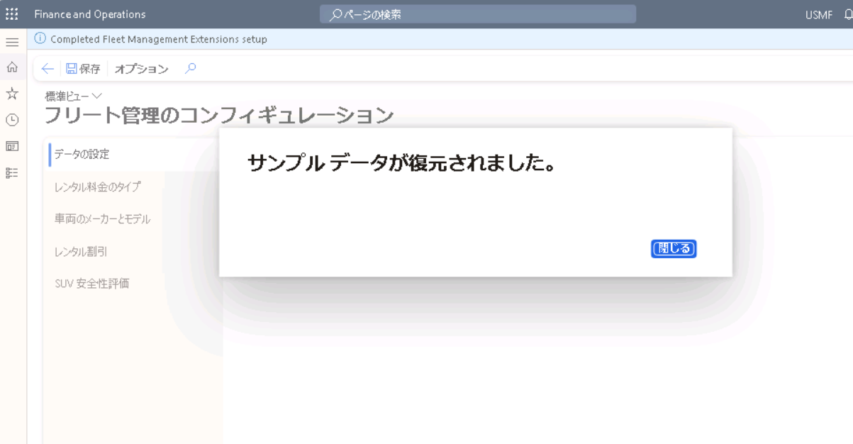 このトレーニングを修了するには、財務と運用アプリのデモ環境と、Contoso のデモ データおよびフリート管理モジュール データを使用する必要があります。