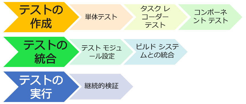 テストをテスト モジュールに統合して、テスト コードの管理に使用できるようにすることができます。 ソース管理にテスト モジュールを追加すると、テストをビルド プロセスに統合できます。 その後、この追加によってビルド時にテスト コードが実行され、すべての機能が期待どおりに機能しているかどうかが確認されます。