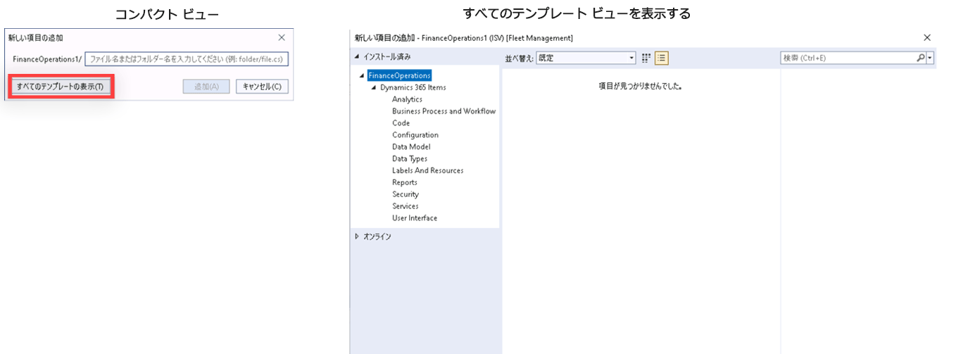 新しい項目の追加ページが次の画像のようにコンパクト表示になる場合、すべてのテンプレートを表示を選択します。