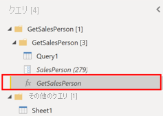 次に、新しい SalesPersonID クエリを Query1 に渡す関数を作成する必要があります。