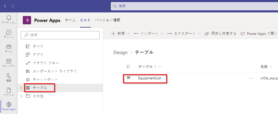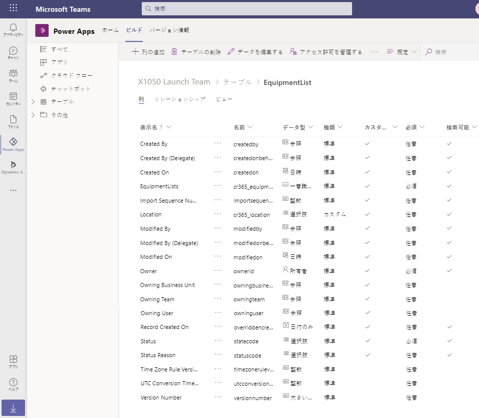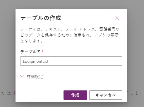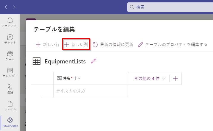 Power Apps テーブル エディター